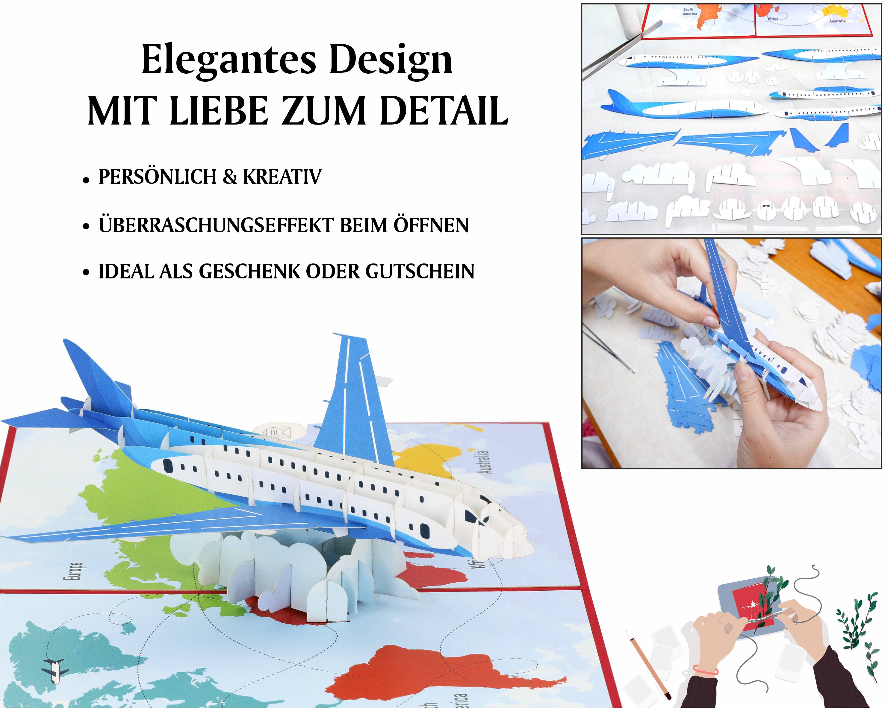 Beim Aufklappen dieser 3D Karte verzaubert Sie ein filigran gearbeitetes Flugzeug, das über den Wolken dahingleitet...